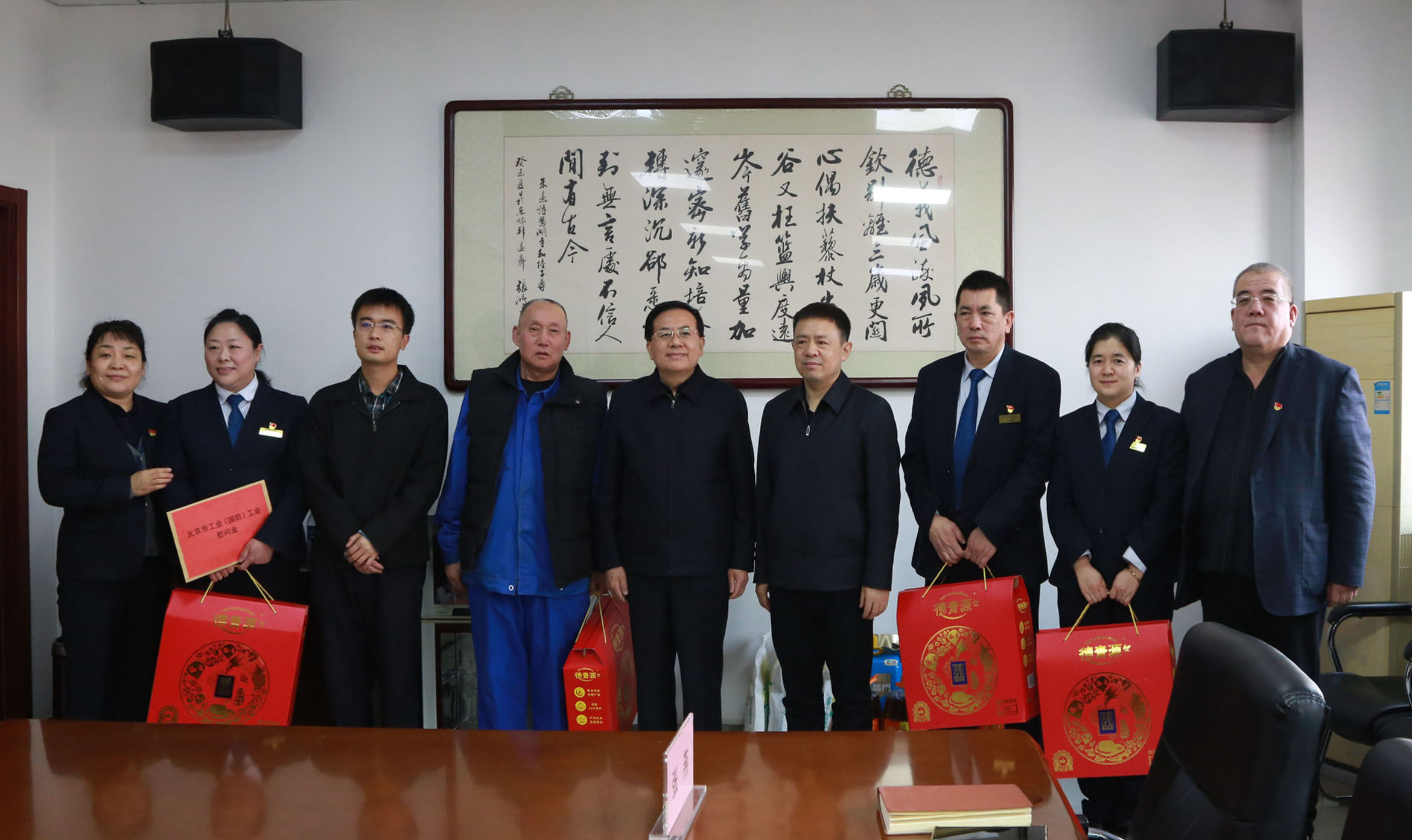 1月19日,北京市總工會工業(yè)(國防)工會主席周玉忠一行來到玻璃集團紅橋文創(chuàng)園走訪慰問勞動模范集體、一線職工,帶來市總工業(yè)(國防)工會的關(guān)懷和問候,送上節(jié)日的祝福。一輕控股公司黨委常委、紀(jì)委書記袁新民陪同慰問。