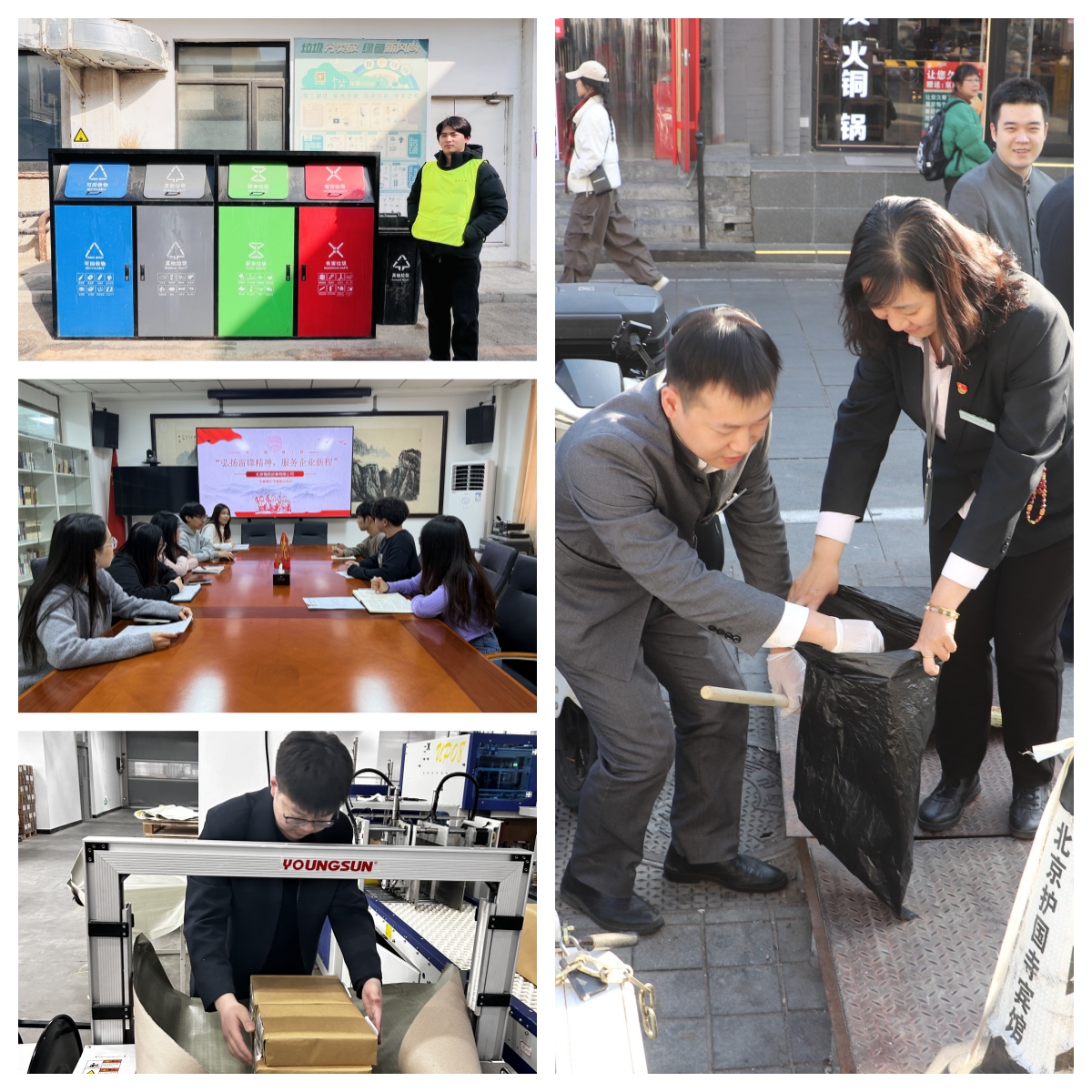 隆達公司所屬印刷集團團支部組織前往順義智慧印刷產(chǎn)業(yè)園和安全印務數(shù)字化示范基地開展生產(chǎn)幫工志愿服務活動,團員青年踴躍承擔書籍配套打包、包裝貼簽和物料搬運等工作,累計完成10萬余本書籍配套、2000余套書籍包裝打包工作,為服務企業(yè)生產(chǎn)經(jīng)營貢獻力量;所屬輕工集團團總支、璟程公司團支部、楠辰公司團支部、護國寺賓館團支部、豪威大廈團支部、塑三文創(chuàng)和富潤飯店團員先后開展公車清潔、桶前值守、垃圾分類、雷鋒事跡學習等活動,將雷鋒精神融入到經(jīng)營工作和社會建設中,爭做新時代追“鋒”人。