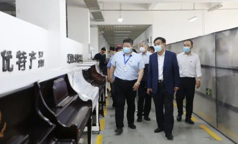 郭明星、葛云程實(shí)地察看了星海鋼琴園區(qū)、立式鋼琴生產(chǎn)車間、三角琴生產(chǎn)車間和企業(yè)展廳。