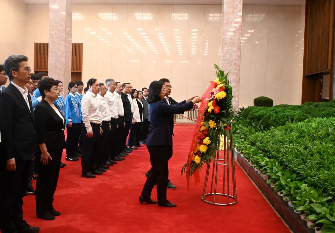 慰問結(jié)束后,領(lǐng)導(dǎo)與志愿者共同進(jìn)入毛主席紀(jì)念堂北大廳,向毛主席坐像敬獻(xiàn)鮮花并鞠躬,表達(dá)對偉人的深切敬仰與緬懷之情。在工作人員的引導(dǎo)下,大家有序瞻仰毛主席遺容,通過參觀陳列文物、文獻(xiàn)、影像資料回顧毛主席光輝的一生,接受深刻的愛國主義教育與精神洗禮。